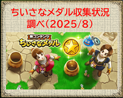 今回は「ちいさなメダル」収集状況調べ(2025/8)について記載していきたいと思います。